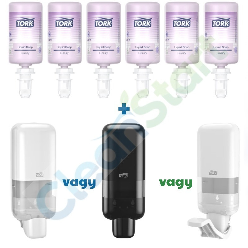 424911 Tork Luxus folyékony szappan 6 darab + 1 darab Tork szappan- és kézfertőtlenítő-adagoló 90%-os kedvezménnyel